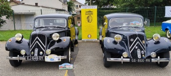 Les Traction prennent la pose aux couleurs de La Traction Universelle, plaques de rallye FFVE obligent !